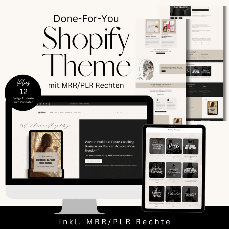 Du möchtest digitale Produkte verkaufen und dabei von professionellem Design und maximaler Funktionalität profitieren? Unser Shopify Theme für digitale Produkte macht es dir leicht, ein profitables Online-Business aufzubauen – und das Beste: Es kommt mit PLR- und MRR-Lizenzen sowie tollen Boni!