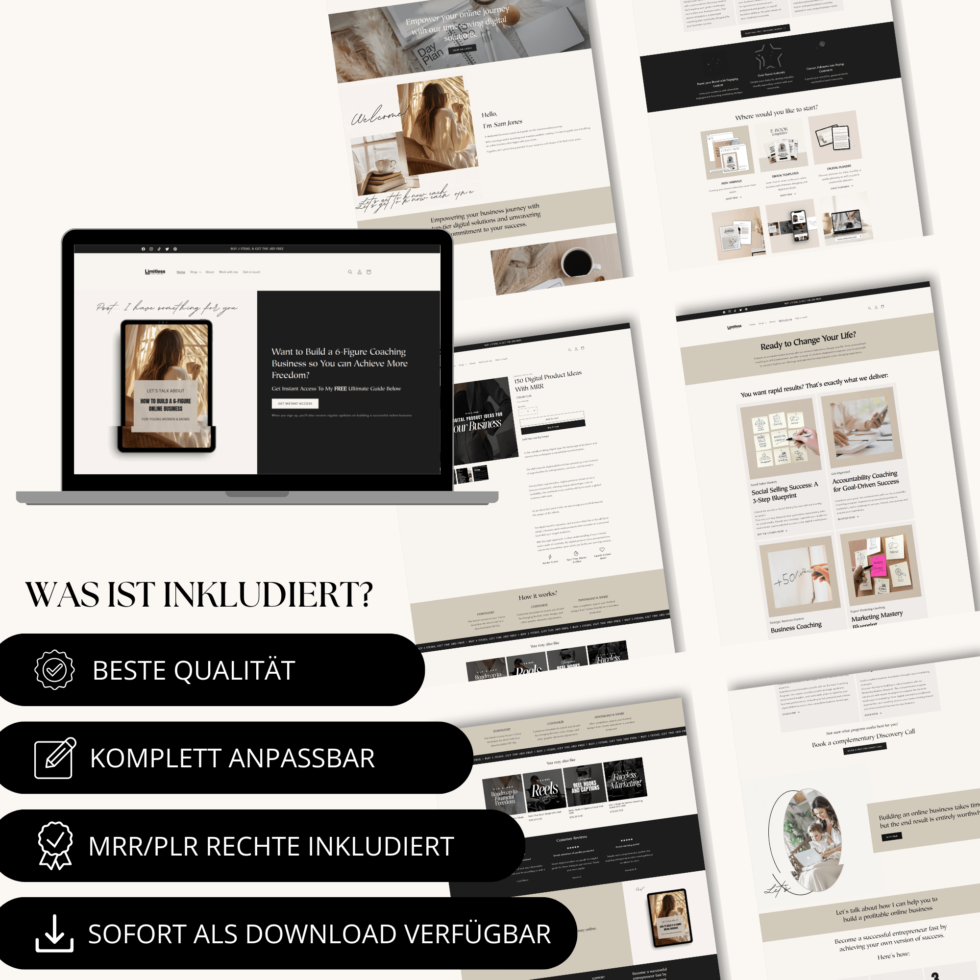 Sofort einsatzbereit und bereit für den Verkauf. Spare dir die Zeit für aufwendige Produkterstellung und konzentriere dich auf den Aufbau deines Business.